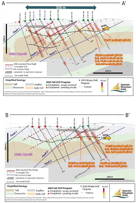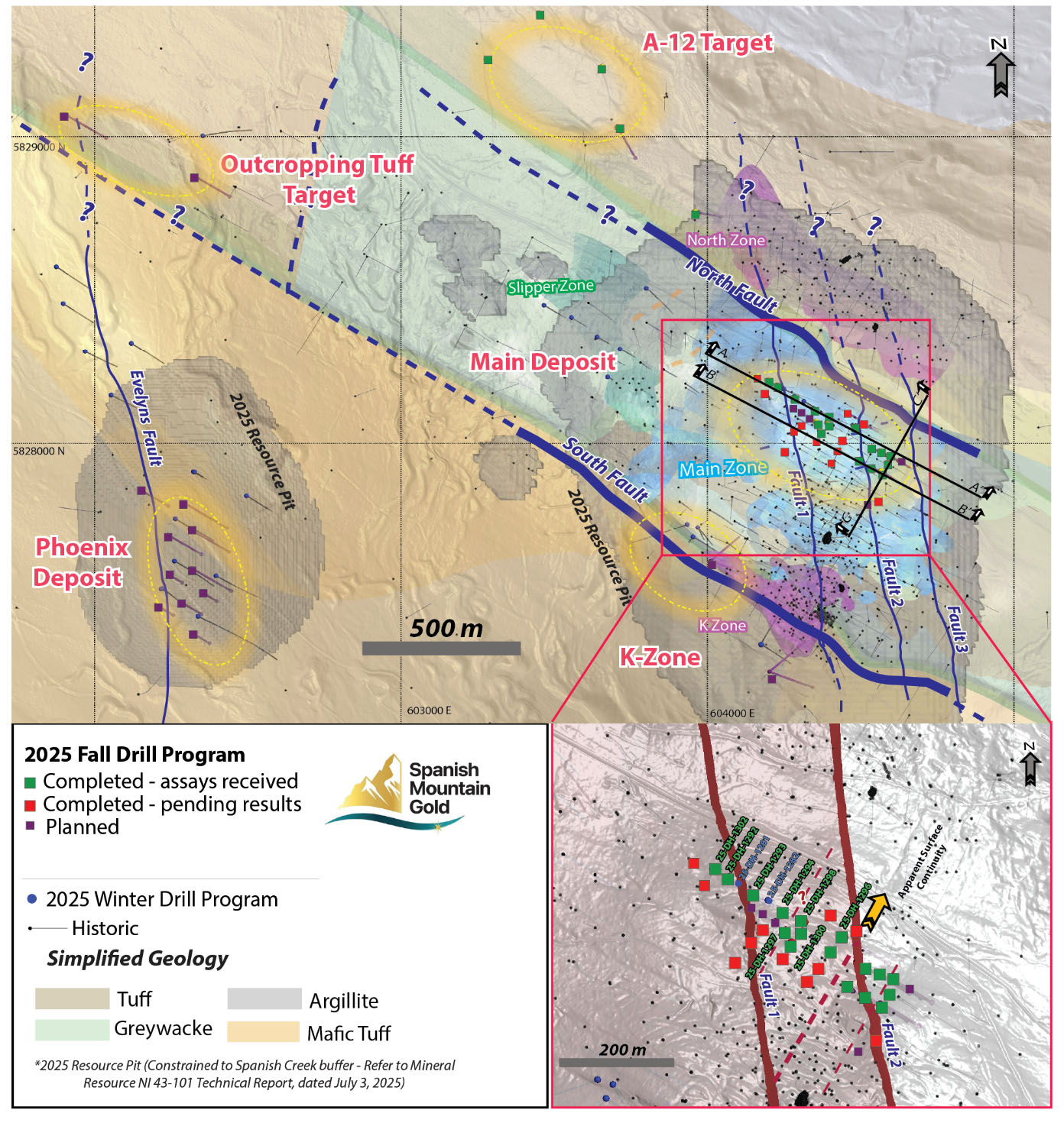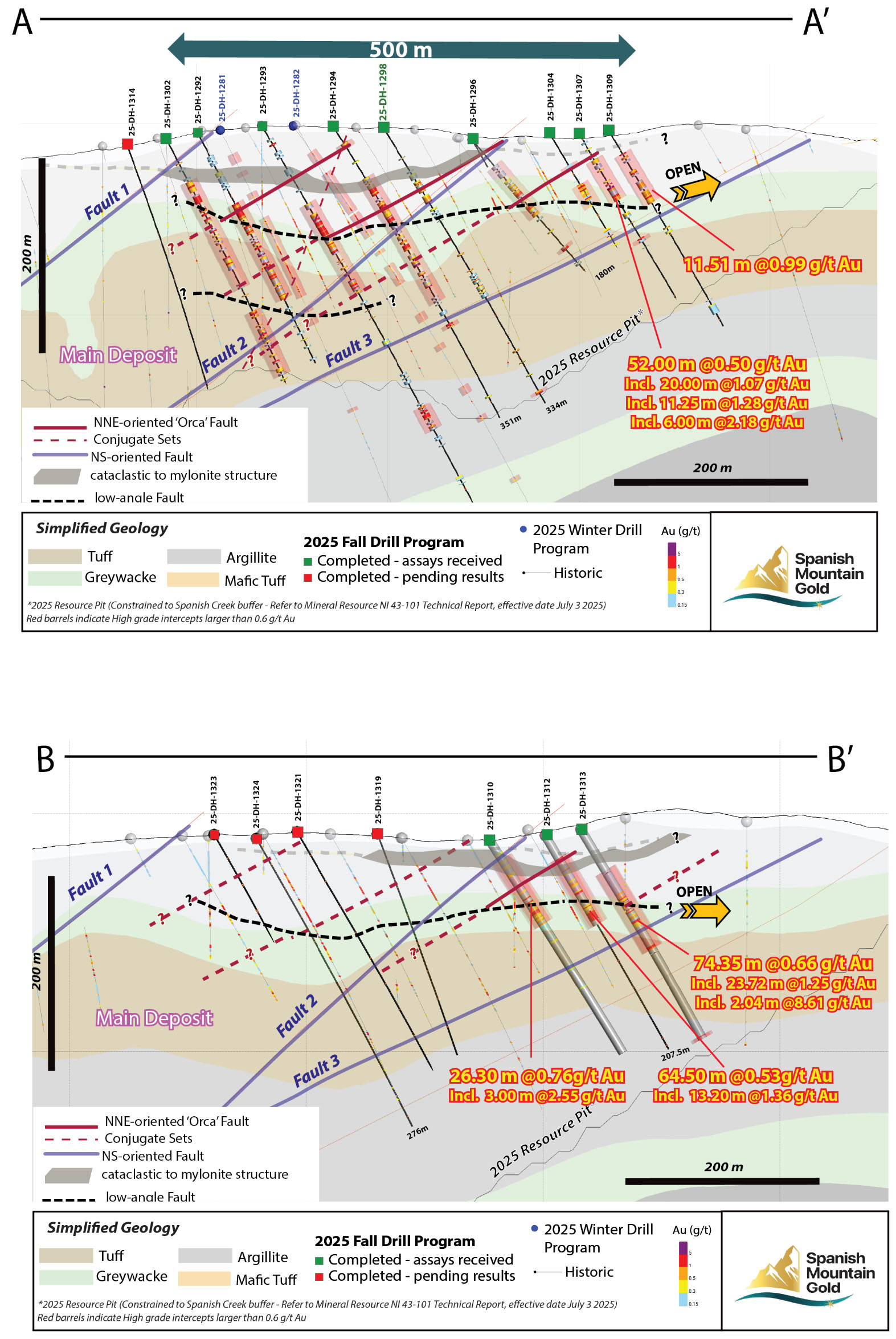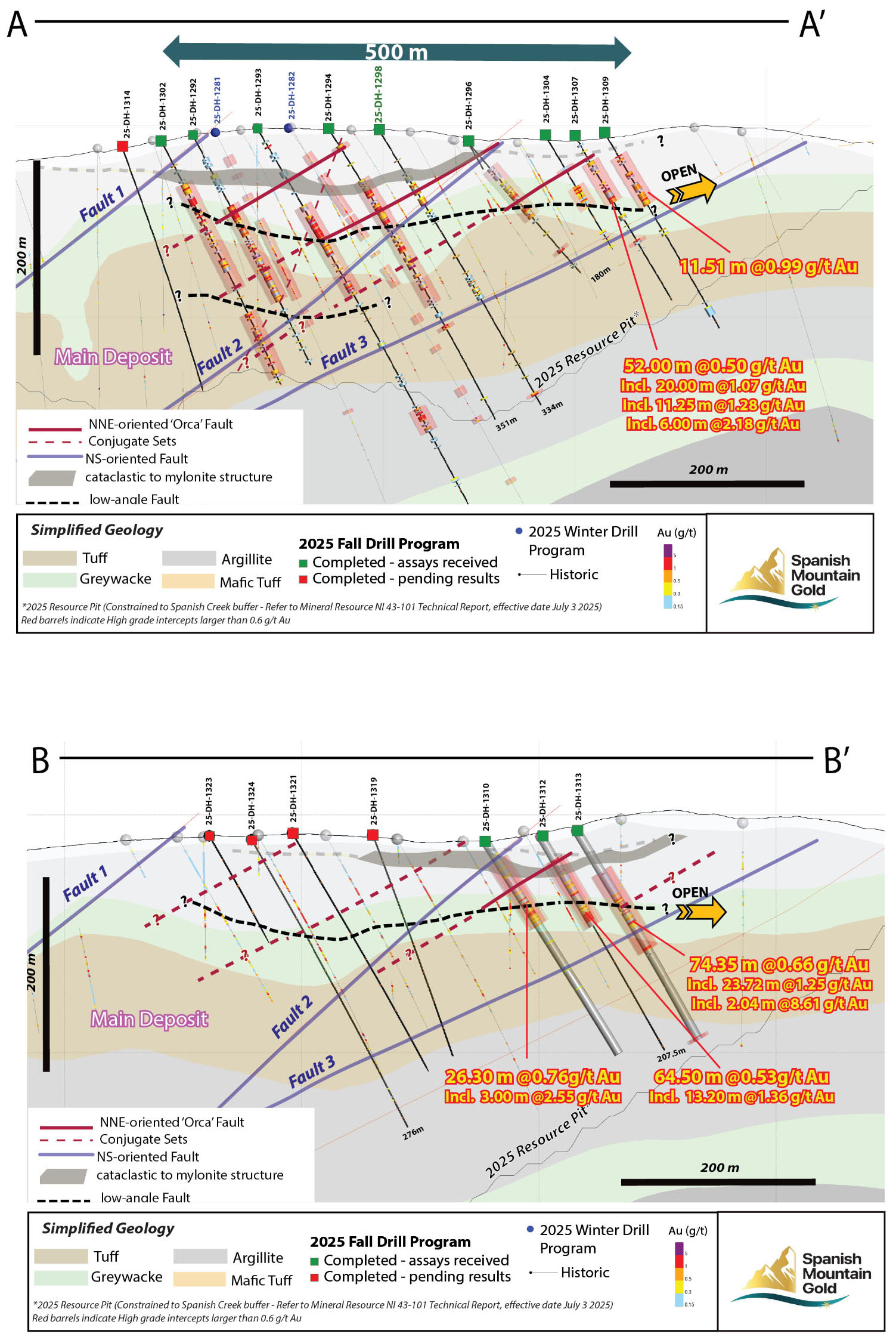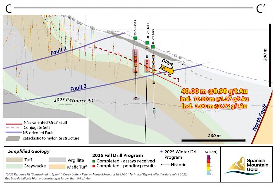 Vancouver, B.C., December 22, 2025 - Spanish Mountain Gold Ltd. (the "Company" or "Spanish Mountain Gold") (TSX-V: SPA) (FSE: S3Y) (OTCQB: SPAUF) is pleased to provide additional assay results from six exploration drill holes within the Orca Fault target trend and five exploration drill holes from the A12 target that were completed as part of its 2025 Fall Diamond Drill program (“2025 Fall Drill Program”) for the Spanish Mountain Gold (“SMG”) project, which is located in the Cariboo Gold Corridor, British Columbia, Canada.