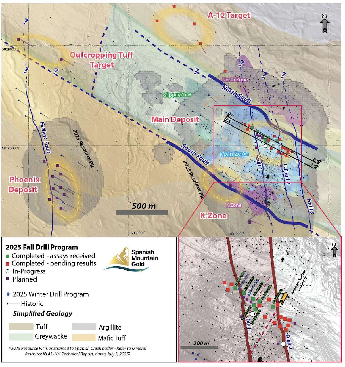 The company has completed approximately 6,947 m of drilling has been completed to date of the 9,000 to 10,000 metres (“m”) of exploration drilling planned under the 2025 Fall Drill Program. Assays and geochemistry are pending on fifteen (15) additional drill holes completed on the newly defined Orca Fault area, and from five (5) completed drill holes on the A12 target.