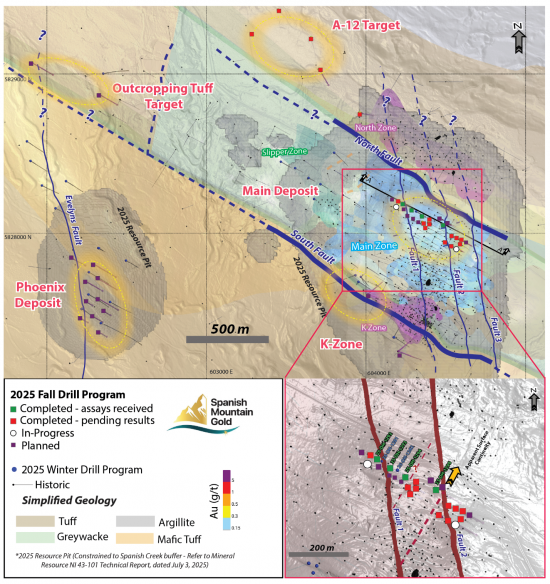 Vancouver, B.C., November 17, 2025 - Spanish Mountain Gold Ltd. (the "Company" or "Spanish Mountain Gold") (TSX-V: SPA) (FSE: S3Y) (OTCQB: SPAUF) is pleased to provide additional assay results from drill holes 25-DH-1294 and 25-DH-1296 completed as part of its 2025 Fall Diamond Drill program (“2025 Fall Drill Program”) for the Spanish Mountain Gold (“SMG”) project, which is located in the Cariboo Gold Corridor, British Columbia, Canada.