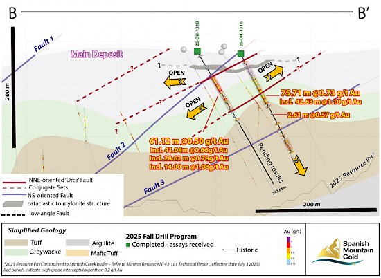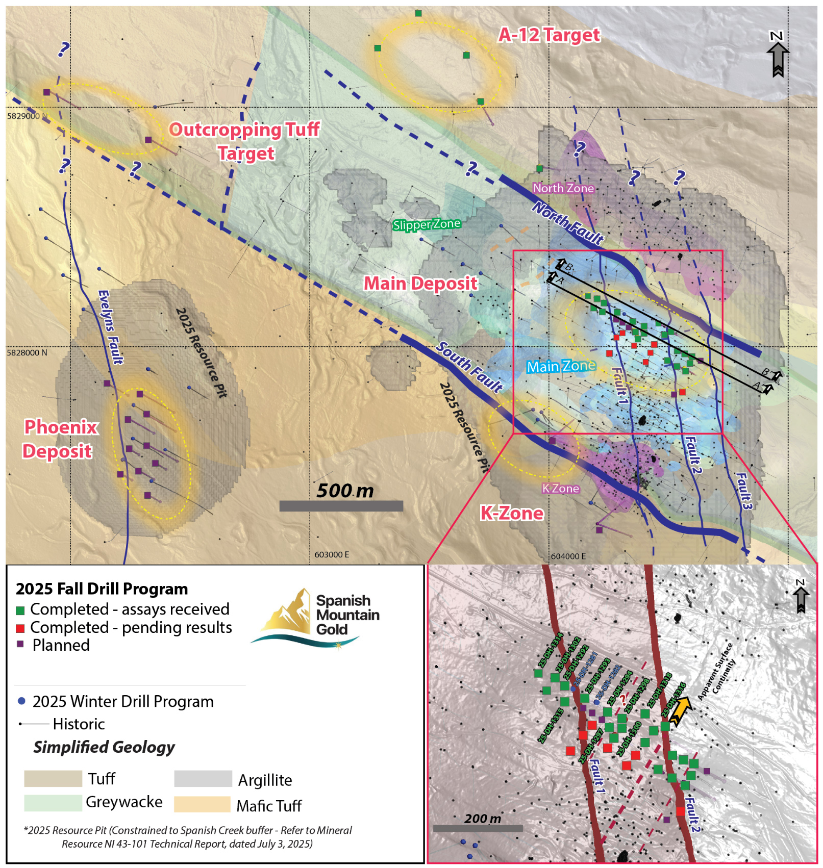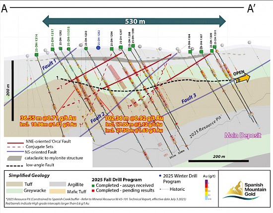 Vancouver, B.C., January 6, 2025 - Spanish Mountain Gold Ltd. (the "Company" or "Spanish Mountain Gold") (TSX-V: SPA) (FSE: S3Y) (OTCQB: SPAUF) is pleased to provide additional assay results from five (5) exploration drill holes within the Orca Fault target trend that were completed as part of its 2025 Fall Diamond Drill program (“2025 Fall Drill Program”) for the Spanish Mountain Gold (“SMG”) project, which is located in the Cariboo Gold Corridor, British Columbia, Canada.